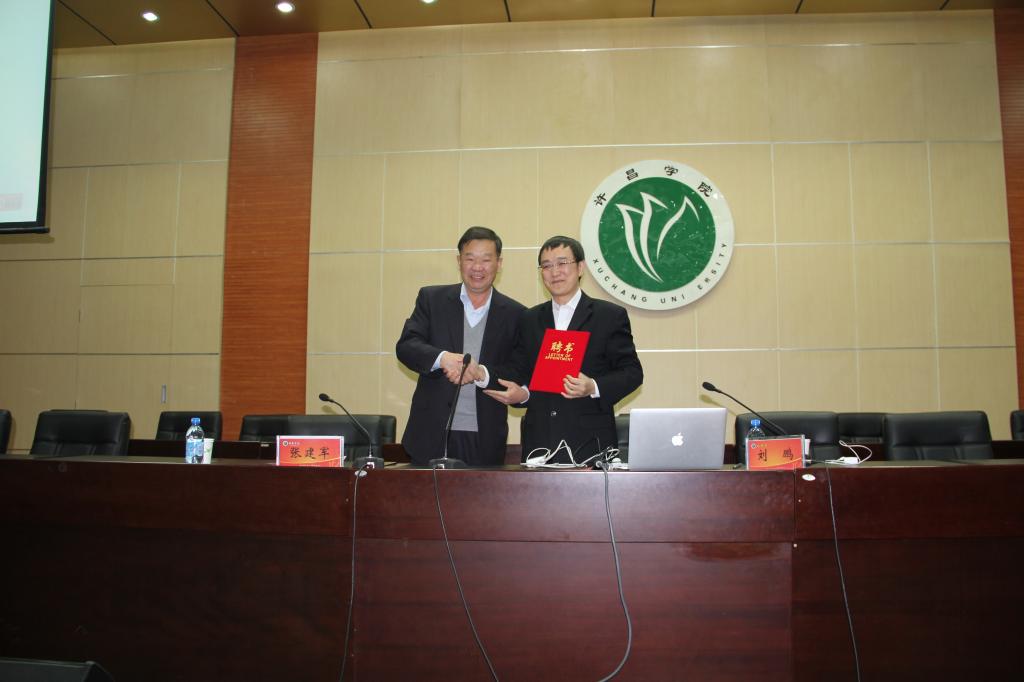 4月3日下午,应科研处、太阳集团tyc234cc(软件职业技术学院)、网络管理中心邀请,解放军理工大学博士生导师刘鹏教授在学术报告厅作了题为《高校云计算大数据建设应用》的报告。张建军副院长出席报告会并向刘鹏教授颁发特聘兼职教授的聘任证书。河南省部分高校代表、许昌市智慧城市建设领导小组和许昌市计算机学会部分专家教授以及太阳集团tyc234cc全体教师及部分学生300余人参加报告会。报告会由张建军副院长主持。
