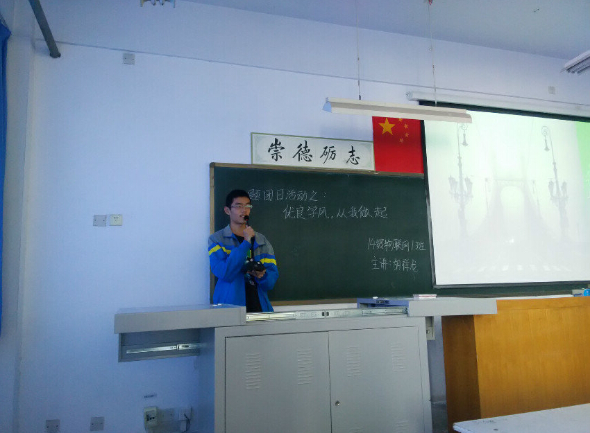 接下来,各团支部就下一阶段学风建设工作发言和讨论。大家的发言各抒己见,有的同学说:学风建设的重点在纪律。有的同学说:学风建设的重点在氛围的营造。14级物联网班学习委员毕晓杰的发言令大家印象深刻,他说:“首先我们要明确我们学风建设的对象是,大学生这个成年的‘非社会人’。这个群有着它独特之处。学风不是一两个人就可以建设起来的,我们必须让大家一起参与到其中。然而要让大家养成良好的学习、生活习惯不是那么得容易的。我们首先得让大家有一个明确的目标,正如 ‘如果人生中没有目标,那就和航海中没有了罗盘一样’。确实。如果连我们自己都不知道自己是在干什么,那还有谁能够明白呢?然而,我们现在的大学生很多就是这种没有明确目标的。为什么中国学生没有创新,不是因为没有创新能力,有很大的一部分原因是咱国人盲从、茫然的结果所致。如果大家都有自己的理想、目标,那这种现象我想是能够避免的。当然这还跟咱们中国人的从众心态有很大的关系,所以说我们在进行学风建设的时候,首先要使大家都有一个目标、理想、规划。如果我们都按着上面的步骤做好自己的大学规划,我想我们的大学生活将会是另样的景象吧。还记得我们很小的时候,老师就问我们:‘长大了想做什么,想成为什么啊?’。你会充满豪情地回答老师:‘我想当医生、当工程师、当老师……’可是随着年龄的增长,我们发现我们离自己的目标是越来越远,于是我们开始降低我们的目标,一降再降,最后也就没有了目标了,一片茫然。于是就:和尚撞钟——得过且过了。”