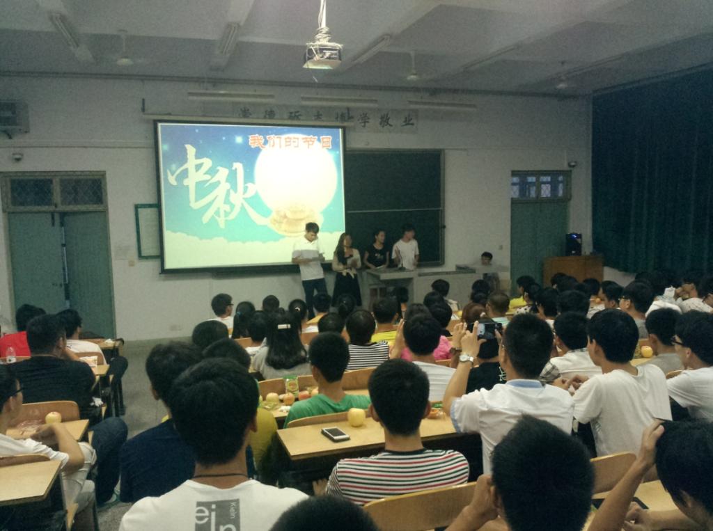 2014年9月8日晚19:00,我院在B合19、B合20教室开展了以“爱国报国、自强不息”为主题的主题晚会,晚会通过以中秋节为主题的诗文朗诵、歌曲、互动游戏等形式,引导广大青年学生感受传统文化魅力,增强爱国主义情感,使广大学生感悟中华经典,传承文化血脉,汲取思想精华。