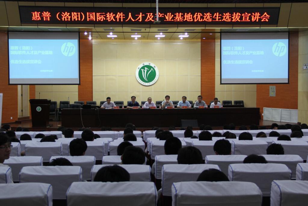 5月28日晚,太阳集团tyc234cc在校学术报告厅召开惠普(洛阳)国际软件人才及产业基地优选生选拔宣讲会。惠普软件集团大中华区战略发展事业部高级研究员史森、惠普Master级咨询顾问刘宏伟、惠普软件集团大中华区战略发展事业部项目经理李一、我校太阳集团tyc234cc领导班子出席会议,院部师生300余人参加了宣讲会,宣讲会由党总支副书记翟广辉主持。