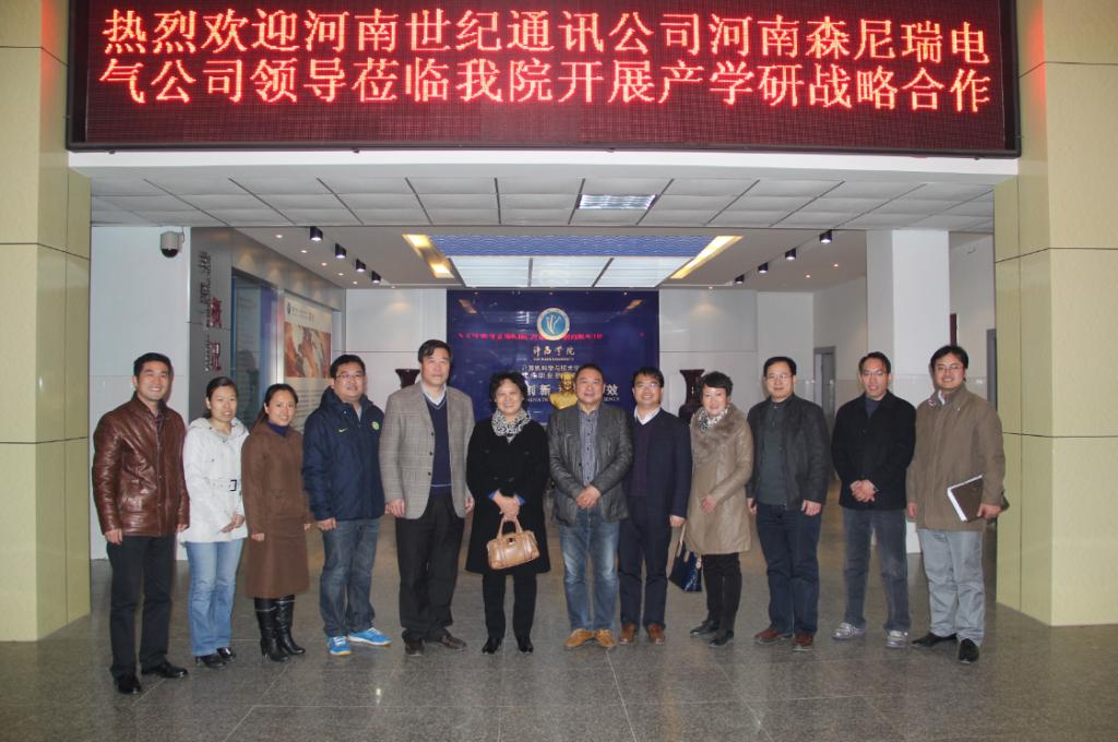 签约仪式上,我院郭超峰书记、张志立院长,河南世纪通讯设备有限公司副总经理郭林、河南森尼瑞电气有限公司总经理陈文锋分别介绍了双方的简要情况,并从校企合作的意义,校企合作的内涵等方面做了精彩的阐述。双方一致认为,加强校企合作、共育人才,可实现校企双方资源共享、互利共赢,有利于学校教学改革的深入开展,有利于企业的持续发展,有利于适合现代企业要求的技能型人才培养。双方坚信,经过校企双方的务实互信和共同努力,校企合作一定能取得圆满成功。