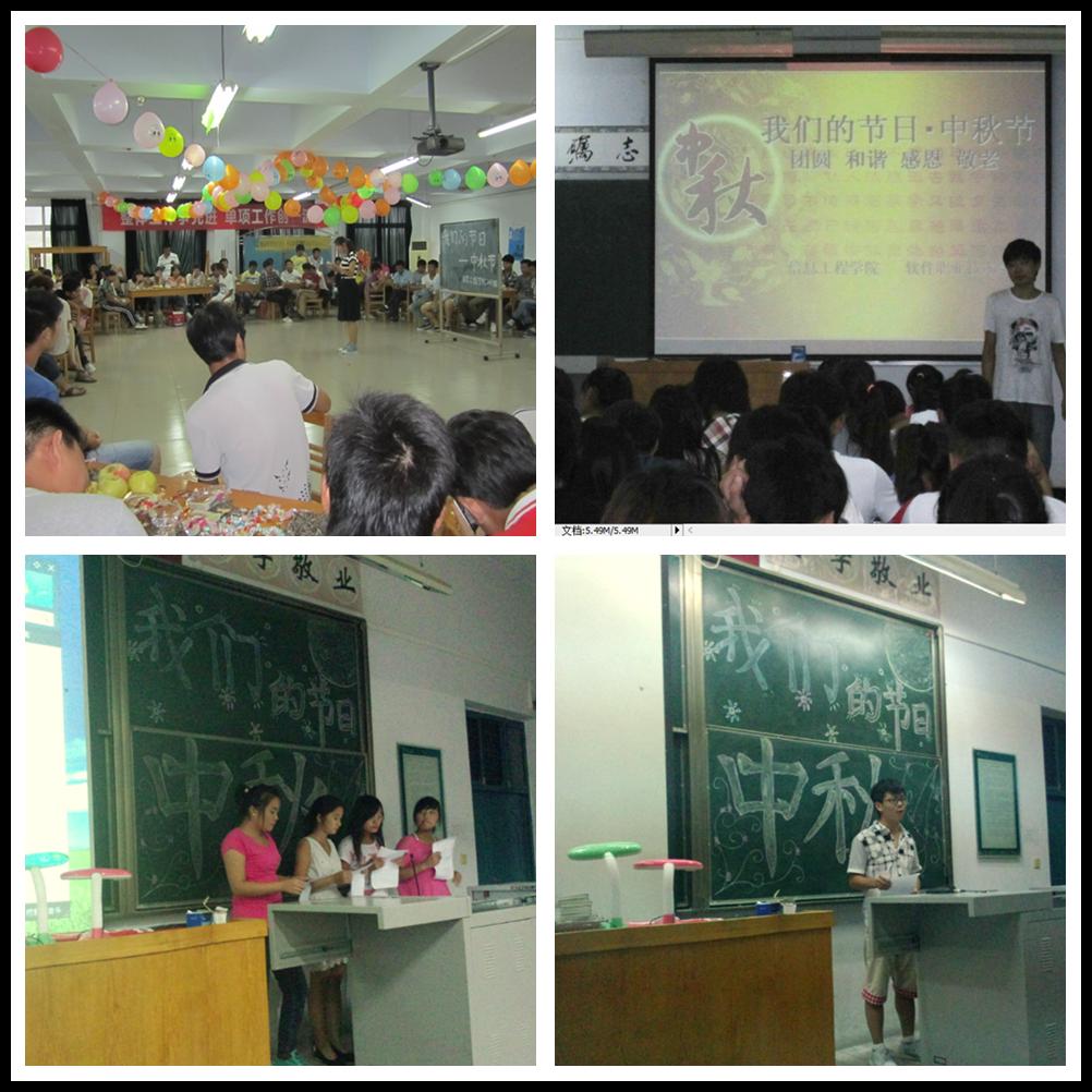 9月16—19日连续四天晚19:00,在团总支和各年级辅导员的带领下,各年级因地制宜,在C404、C405、C406、C407、B合15、计算机实验楼311等教室,开展了以“爱国报国、自强不息”为主题的主题班会和中华经典诗文诵读活动。《水调歌头•明月几时有》、《背影》、《梦想的力量》等一首首或是经典的诗词、或是自己的文字创作,同学们通过声情并茂的吟诵,寄托了我院广大师生对中秋节的绵绵情思和对实现中国梦的无限憧憬,引导了广大青年学生感受传统文化魅力,增强了爱国主义情感,使广大学生感悟到了中华经典,传承文化血脉,汲取思想精华。