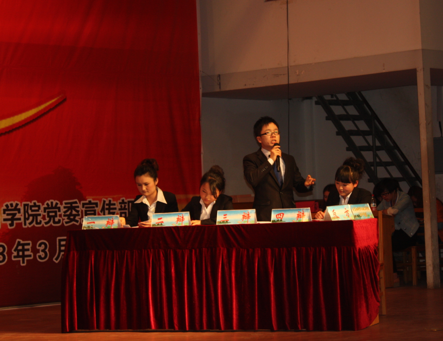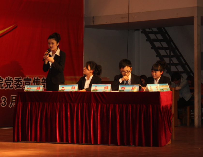 3月29日16时,太阳集团tyc234cc第26届“雄才韬略”辩论赛8进4比赛在新餐厅四楼大学生活动中心隆重举行。本次比赛我院与美术学院关于“先成家还是先立业”这一话题展开辩论,我院代表队持反方观点:先立业后成家。裴新华、黄华、谢精杰、王亚楠四位同学做为我方辩手,满怀信心、斗志昂扬为了计科的荣耀而战。