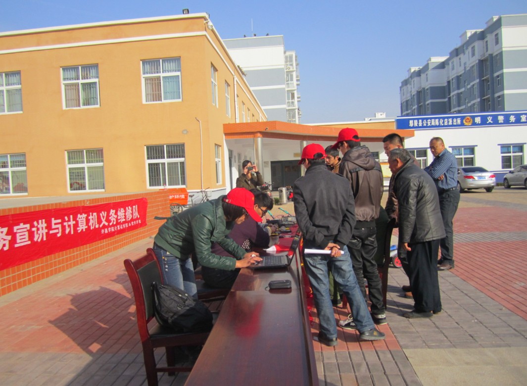 2012年暑期社会实践活动已经结束近五个月,为了更好的对活动进行总结,为下一步的社会实践活动打下更坚实的基础,11月16日下午,在计科院团总支书记梁衡老师和食品学院团总支书记陈荣华老师的带领下,计科院“计算机知识宣讲与计算机义务维修社会实践队”,协同食品学院“食品科学与安全社会实践队”和电信学院“家电义务维修社会实践队”再次来到鄢陵县陈化店明义社区进行了暑期社会实践回访活动。这次回访受到了明义社区相关领导和社区居民的热烈欢迎。