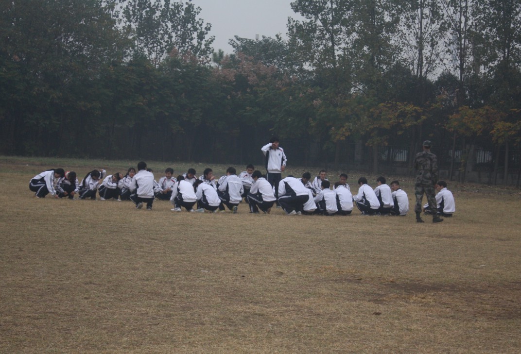 早上六点半,天蒙蒙亮,还下着淅淅沥沥的小雨。参加素质拓展的近三百名同学汇聚在操场,在裴新华宣布活动开始后,全体学生分为八个小组,等待教官的到来,并开始素质拓展的具体活动。雨越下越大,但丝毫没有降低同学们的热情。每个小队分别起了队名、队歌和口号。之后,举行了简单的会操表演。