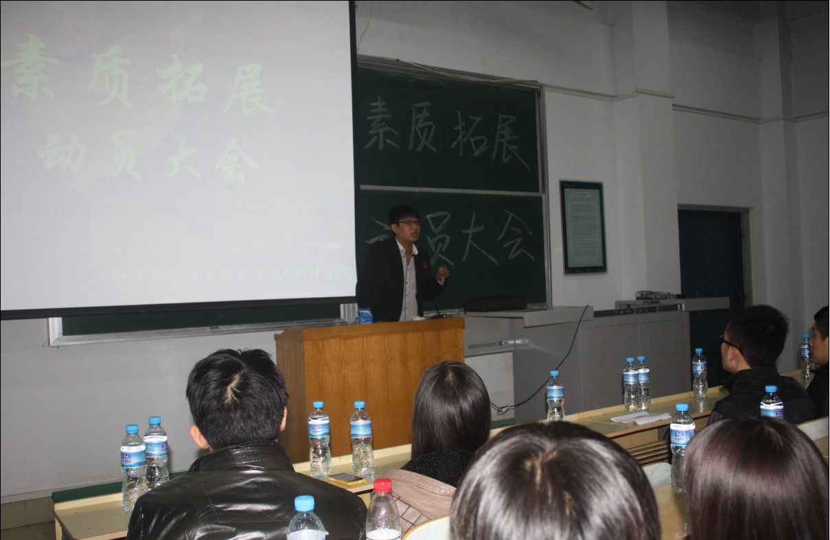 11月2日晚,计算机科学与技术学院&软件学院在B合四成功举办素质拓展动员大会。我院团总支书记梁衡、12级辅导员李雨娟、刘子源、学生会主席裴新华以及学生会干部出席了动员大会。参加此次素质拓展我院大一、大二近三百名学生齐聚一堂参与动员大会。