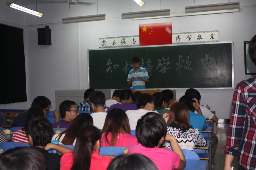 9月26日晚,计算机科学与技术学院(软件职业技术学院)2010级、2011级全体学生在C楼四楼教室开展以“知校情、学校史”为主题的团学活动。此次团学活动由各班团支书主持,在班长的协助下举行。并有我院团总支的学生干部们对活动中的版面设计、到会人数、现场气氛、以及教室内的纪律、卫生等进行评定。