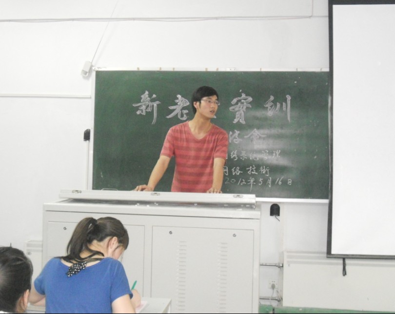5月16日晚六点,软件学院2011级网络技术、网络管理班学生在计科楼IT大合堂召开新老生实训经验交流会。交流会邀请刚从安博昆山实训基地归来的2010级优秀学生王舒艳、王海龙、聂志华、周扬传经送宝。