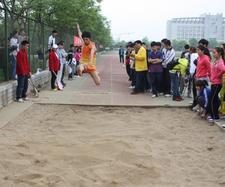 在200米的赛事中,我院的彭飞、曹自培两名选手分别以小组第一和第二名的成绩完美出场,男子800米中赵洋也取得了第三名的成绩。最为精彩的是接下来由八人组合的“同舟共济”比赛,充分考验了运动员之间的默契以及“不抛弃,不放弃”共同向前的精神。女子同舟共济800米更是取得了第三组的第一名的好成绩。在体现运动员体力的3000米长跑比赛中,我院的参赛选手罗大帅、杨翕童凭借顽强的毅力坚持着,场外的加油声和场内队员的鼓励声更是他们跑下去的动力。同时进行的还有跳高和跳远比赛,一点点提升的高度,一步步增加的距离都体现着运动员们的努力拼搏与追求更高更远的精神。男子跳高中,孙亚鑫荣获第四名。